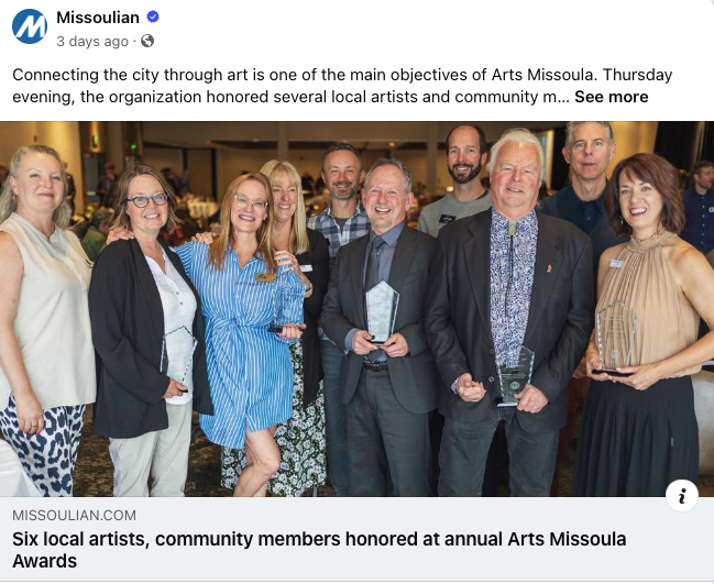 Missoulian Article (June 1, 2024) – Six Local Artists, Community Members Honored at Annual Arts Missoula Awards