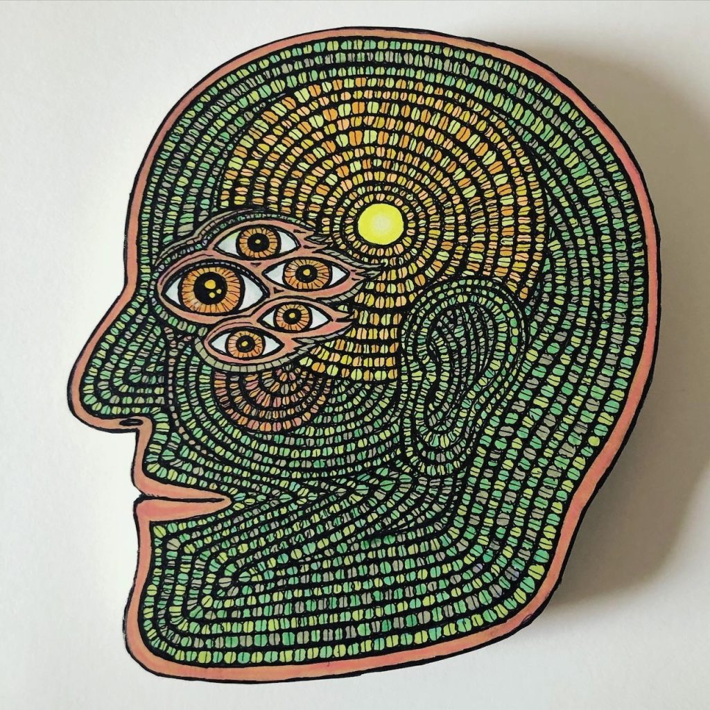 His most recent graphic novel, Secret Life (an adaptation of a short story by Jeff VanderMeer) was published in 2021 by Drawn and Quarterly (Montreal, CA). He’s drawn comics for numerous international publications and his work has been translated into French and Serbian. He is the house artist for the London based record label, Astral Industries and his illustration clients have included Oxford University Press, Warp Records, Houghton Mifflin Harcourt, and Pulp Modern. He started the yearly Fall tradition of building a Harvest Monster in his yard every year with his family and loves to draw with his kids and collaborate with friends. He’s been quietly working on several graphic novels and collaborative book projects and feels very lucky that he gets to draw every day.