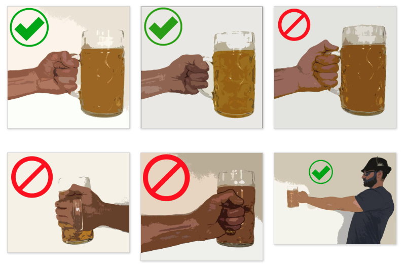 - The thumb may not rest on top of the stein handle; it must rest on the other fingers.