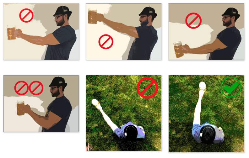 - The stein must be gripped such that the front (the side of stein opposite the handle) faces directly away from the competitor, extending in parallel with the arm.